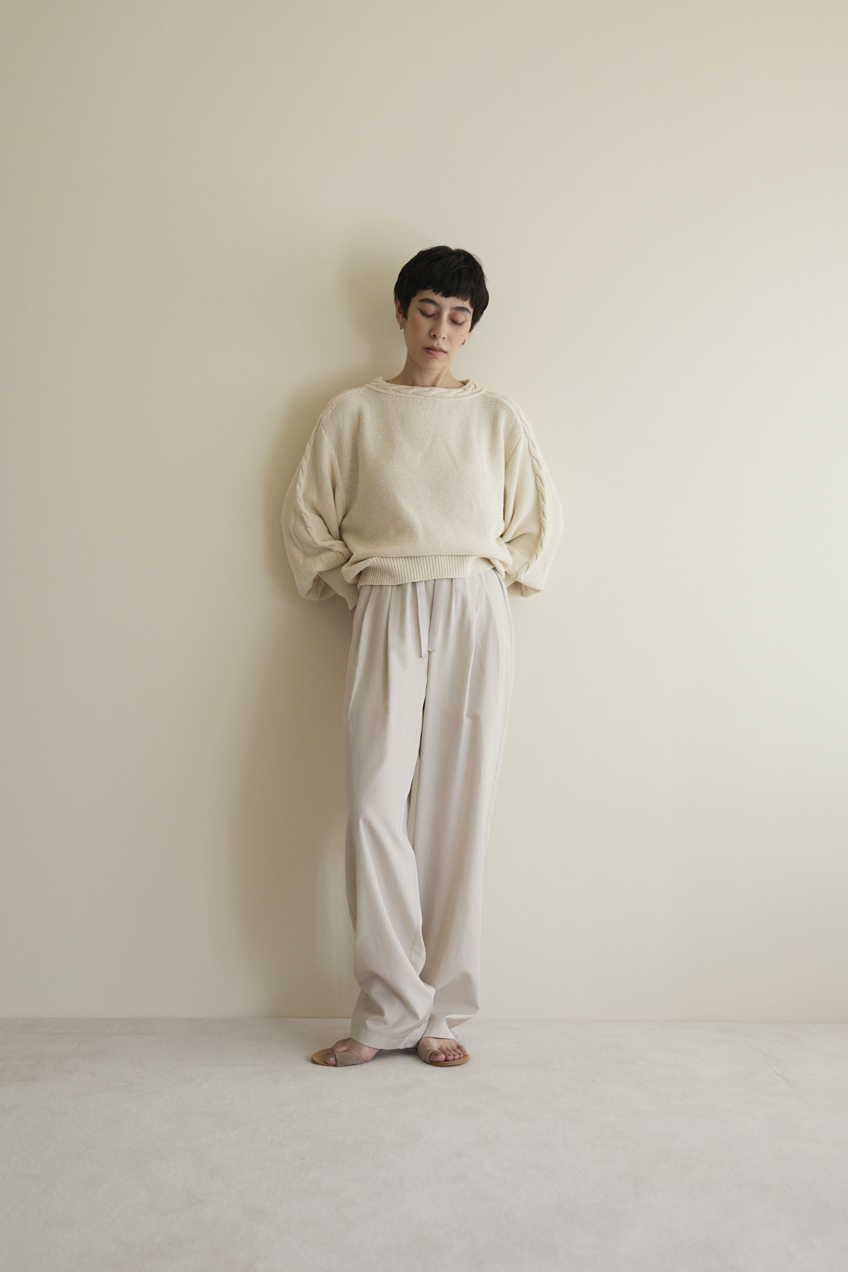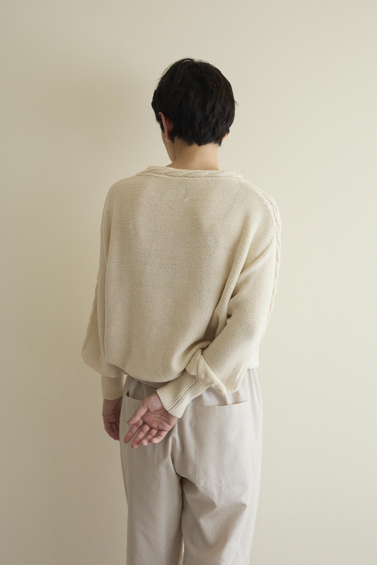 ・一度着たら1〜2日以上休ませると繊維を良い状態で保つことができます。カシミヤは比較的型崩れしにくく吸湿性の良い繊維ですが、連続して着用すると形状変化を引き起こしやすくなります。着用の間隔を開けることで、カシミヤ自身が湿気の吸収や発散を繰り返し自然と元の形に戻ろうとします。