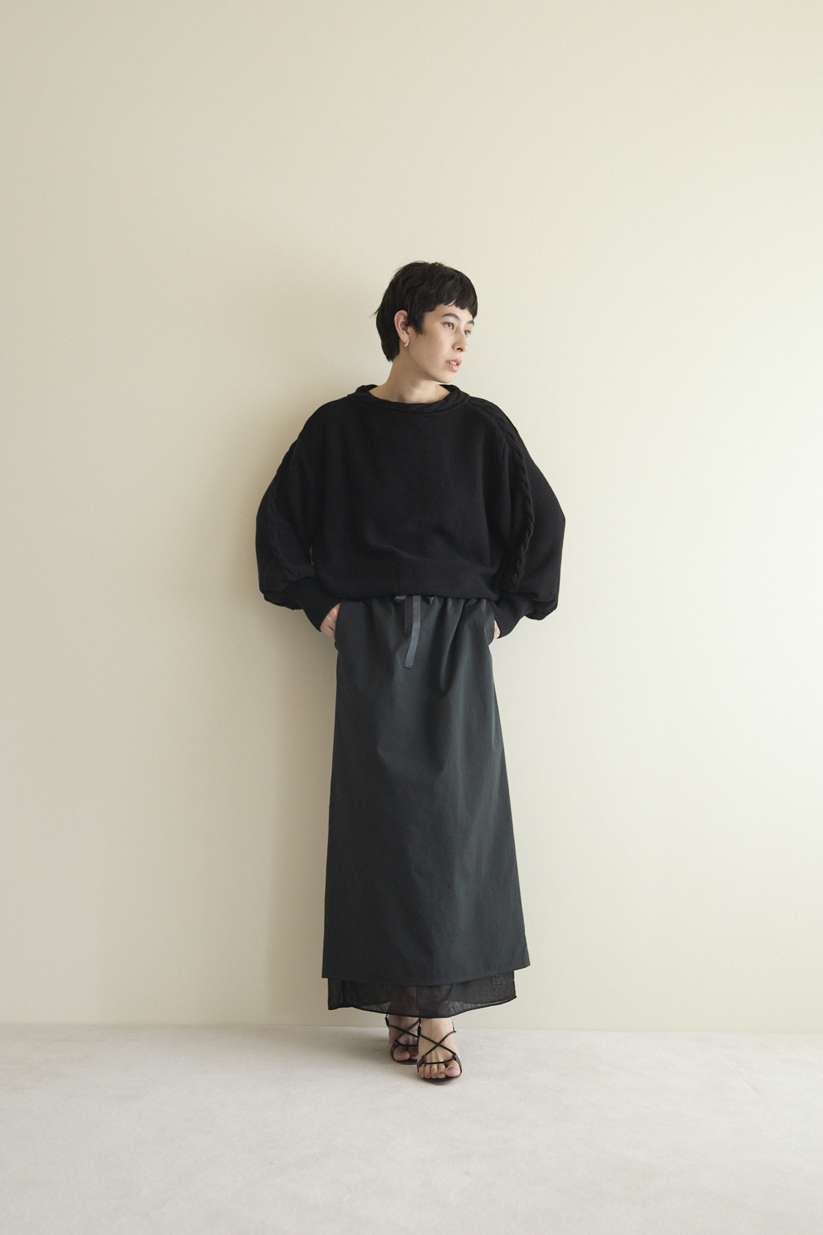 ・アシンメトリーのデザインや、裾の長さが異なる商品につきましては、最長の長さを着丈としております。