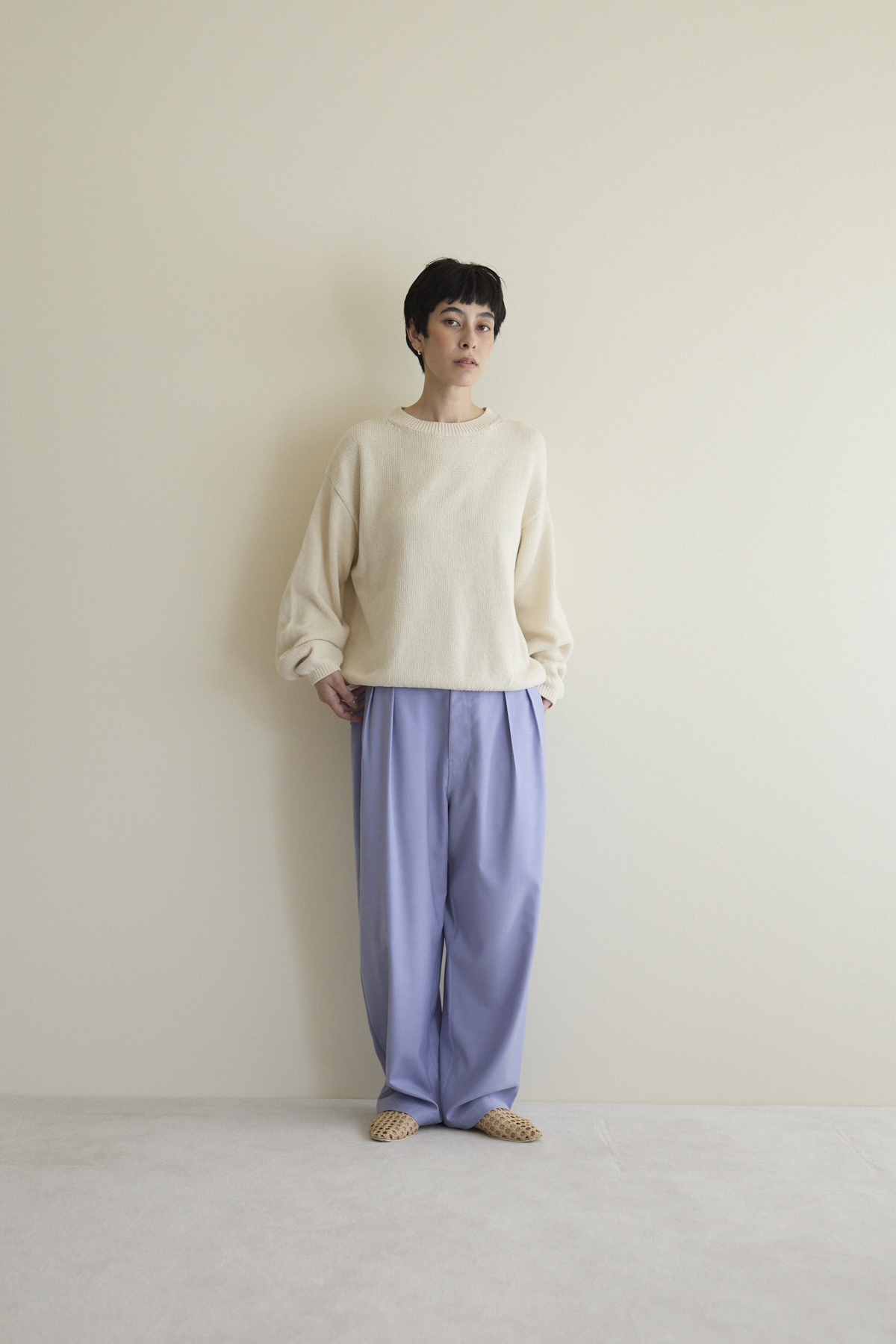 ・一度着たら1〜2日以上休ませると繊維を良い状態で保つことができます。カシミヤは比較的型崩れしにくく吸湿性の良い繊維ですが、連続して着用すると形状変化を引き起こしやすくなります。着用の間隔を開けることで、カシミヤ自身が湿気の吸収や発散を繰り返し自然と元の形に戻ろうとします。